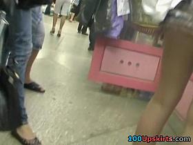 Peeking up petticoat on the public transport