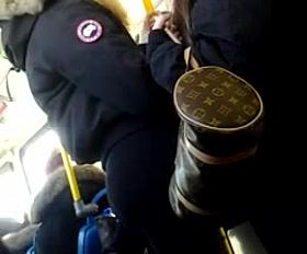 Slim chick was riding in a bus, wearing a hot skirt. The candid voyeur camera filmed her mouth-watering bum.