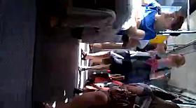 No one can blame this upskirt voyeur dude for filming under pink skirt of this g-string-wearing slut.