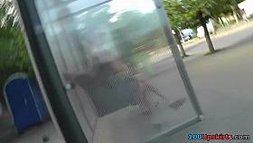 Golden haired beauty with bangs walks the streets candid porn