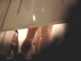A bodibuilder woman is not aware that a hidden dressing room camera is spying after her