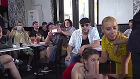 Two sluts public fucked in crowded restaurant