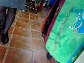 Horny Mature Fucked In Her Sheer Brown Pantyhose