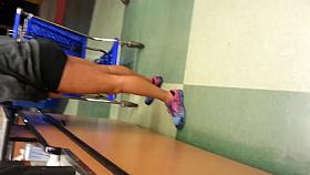 Candid US College Teen Shoeplay Feet Dangling in Nylons PT 1