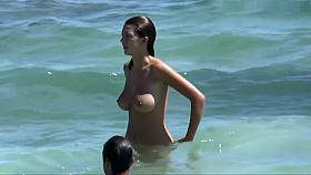 Brown-haired exotic hottie messing with her phone during top sharking action