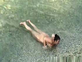 Brunette Woman with Hairy Pussy Nude at the Beach