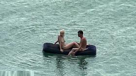 Guy strokes and couple fucks in beach