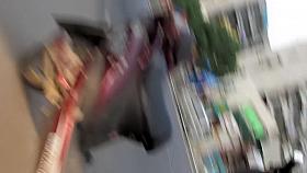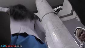 A naughty guy is filming an upskirt voyeur video of a gorgeous bimbo with wonderful ass and beautiful legs