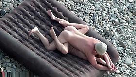 Voyeur on public beach. Hot young couple sex