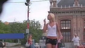 Sexy ass blonde in jean shorts in street candid video