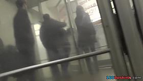 She lifts her skirt and shakes her flawless booty with a thong running down the crack as she walks down the sidewalk. She’s out in public but doesn’t care because it’s fun to expose her flesh.