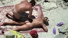 Couple spied in rocky beach having sex