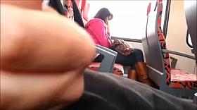 Pretty lady get cream on subway in blue silk satin skirt FNK 024