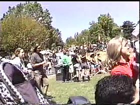 Outdoor downblouse video with enticing smooth gals being caught on tape