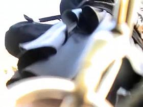 Smiley long-legged amorous vixen flashes her twat during sharking attack