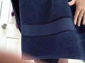 drying her natural hairy pussy, tittys and belly,