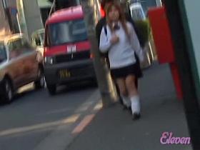Little brown-haired oriental slapper gets publicly exposed during sharking action