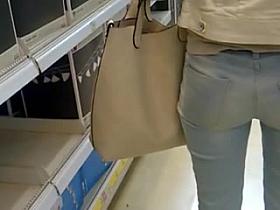 boso voyeur lady upskirt on a beauty store
