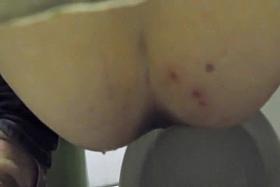 Judging from what the hidden camera caught in the public toilet, this chick isn't having sex these days. Still, that doesn't mean we can't enjoy the sneaky sight of her tight hairy pussy and open ass while she bends over to take a piss. Her pussy looks really hot from this angle.