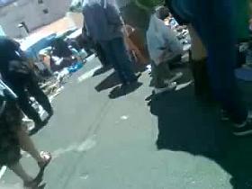 Street sharking with woman in jeans shorts