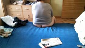 Camera in girls dressing room demonstrates an Asian trying on some sexy lingerie