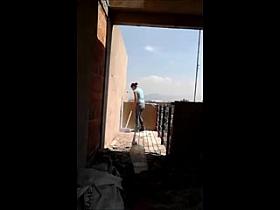 Upskirt of friend's girlfriend on a balcony