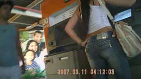 Teen girl in tight jeans buying food