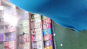 Brunette girl was wearing nice wide skirt when an upskirt voyeur dude filmed her nice small buttocks.