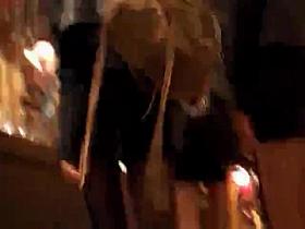 This sweet chick in a long summer dress sat behind her friend on a motorcycle and when she fixed it up she showed her white panties and a cute tushy to all the bystanders, including a voyeur that filmed it. She didn't even know what she is doing while fixing the dress.