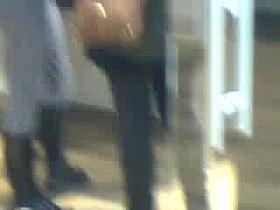 Young babe bating while waiting for the train