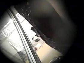 Upskirt shots on an escalator show two sexy chicks' nice as