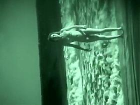 And extremely seductive goddess in high heels in a tube filling with water