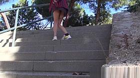 Blonde bimbo got her naked pussy park upskirt voyeured