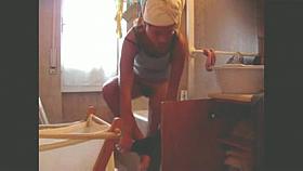 Hairy woman caught in change cabin