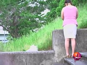 Disgusting Japanese hoe takes shit and pees in the open