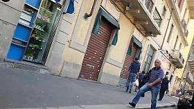 A hefty xxxl woman in a street candid video walks in tight black jeans