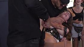 Big tits slave spanked and fucked in public
