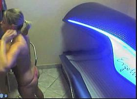 Sexy girl masturbates in the tanning bed