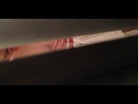 Girl is stripping and getting on the window voyeur video