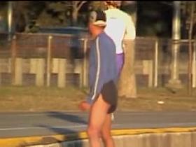 Sweet girl in tight blue pants on candid voyeur cam 08g