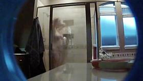 Hidden shower cam video with girl toweling nude body