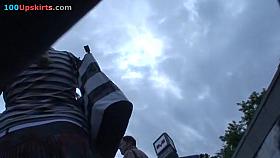 Candid cameltoe closeup of girl in the latex shorts 04n