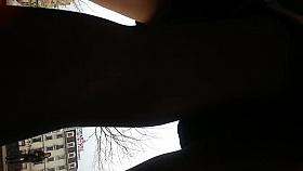 Curvy brunette hussy lets a voyeur peek up her skirt