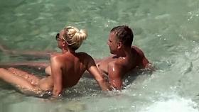 Beach cabin hidden cam scenes with doll in red bikini