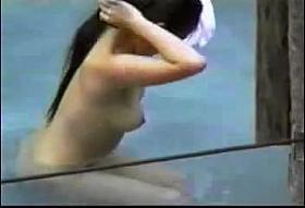 Nude butted girl is getting voyeured on cam in the pool 1