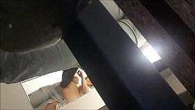 Voyeur view: girl with BIG BOOBS shaving pussy