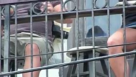 Hot upskirt shots withy brunette by a voyeur