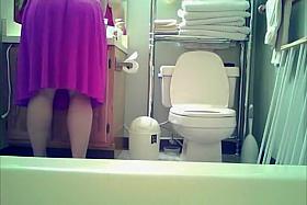 She’s the one that setup the camera and as she squats sideways over the public toilet the girl makes sure to turn and show off her pussy and asshole while she pees.
