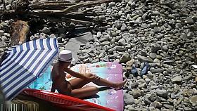 Small boobs nudist woman sunbathing