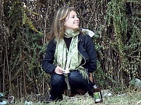 Chick pissing in the nature